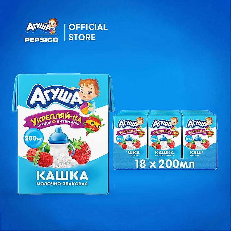 Combo 10 hộp Sữa ăn dặm tăng đề kháng gạo sữa vị dâu tây, dâu đất và táo Agusha 200ml/hộp