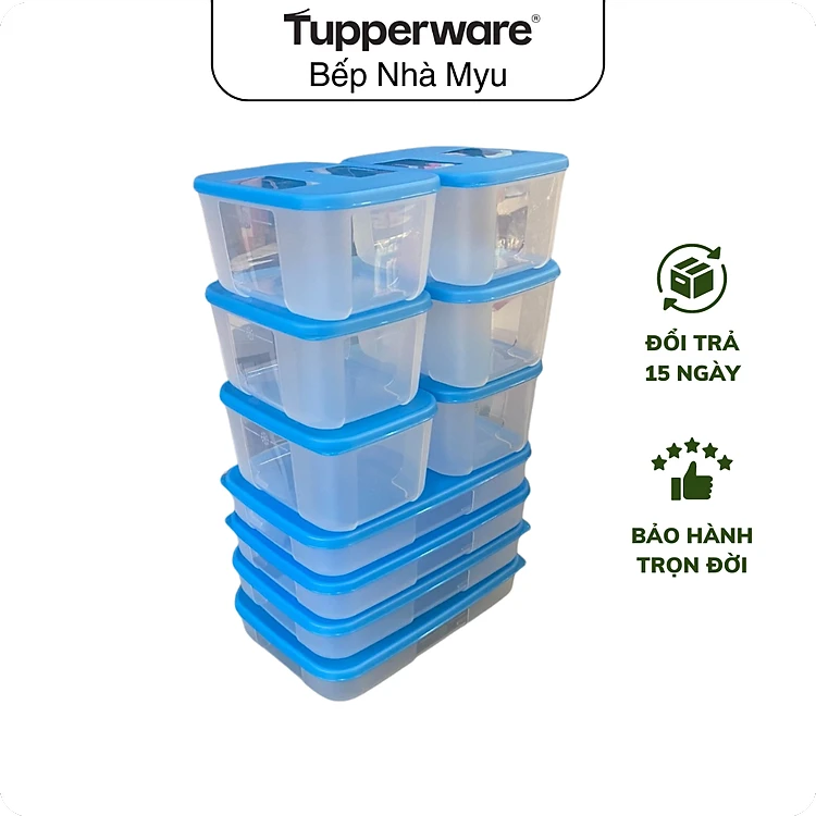 Combo 10 Hộp Trữ Đông Tupperware 650ml - Nắp Xanh - Kín Mùi - Kín Khí - Nhựa Nguyên Sinh