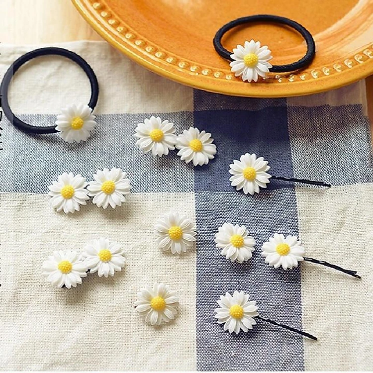 - Buộc tóc, kẹp tóc hoa cúc đẹp xinh xắn và đáng yêu.
