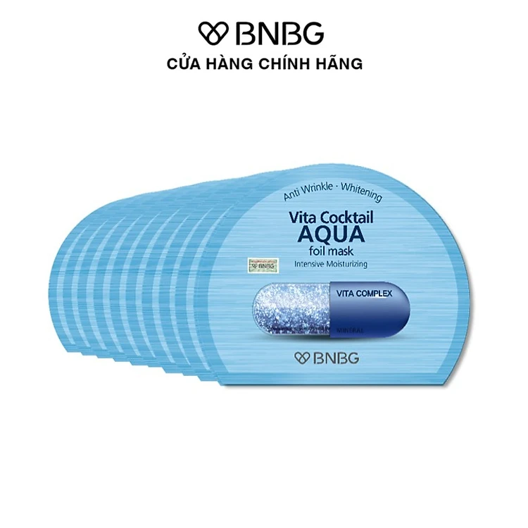 +Vita Cocktail Aqua Foil Mask Intensive Moisturizing (màu xanh) – “anh hùng” của làn da khô, có tác dụng cấp ẩm sâu cho da, làm mềm khiến da căng mướt, mịn màng chưa từng có.