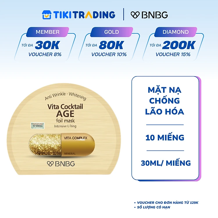 Combo 10 Mặt Nạ Chống Lão Hóa, Giảm Nếp Nhăn BNBG Vita Cocktail AGE Foil Mask 30mlx10
