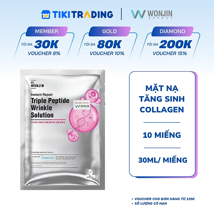Combo 10 Mặt Nạ Tăng Sinh Collagen Cấp Tốc Dr.WonJin Instant Repair Triple Peptide Wrinkle Solution Mask 30g x10