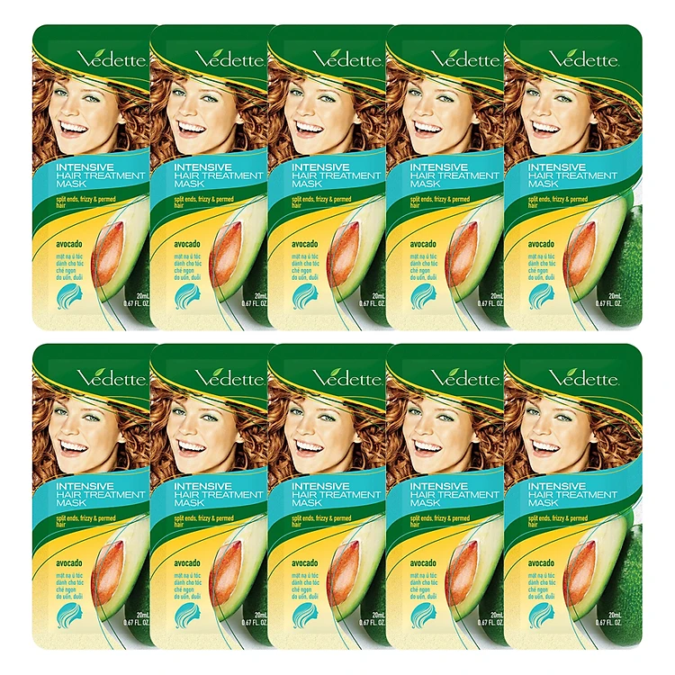 • Combo 10 Mặt Nạ Ủ Tóc Vedette Bơ (20ml / Miếng) mang đến cho mái tóc của bạn giải pháp bổ sung dưỡng chất và độ ẩm để nuôi dưỡng từng sợi tóc từ sâu bên trong.