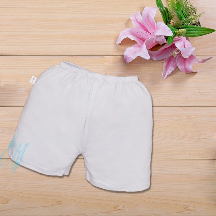 Sản phầm gồm 10 quần đùi màu trắng cho bé sơ sinh.