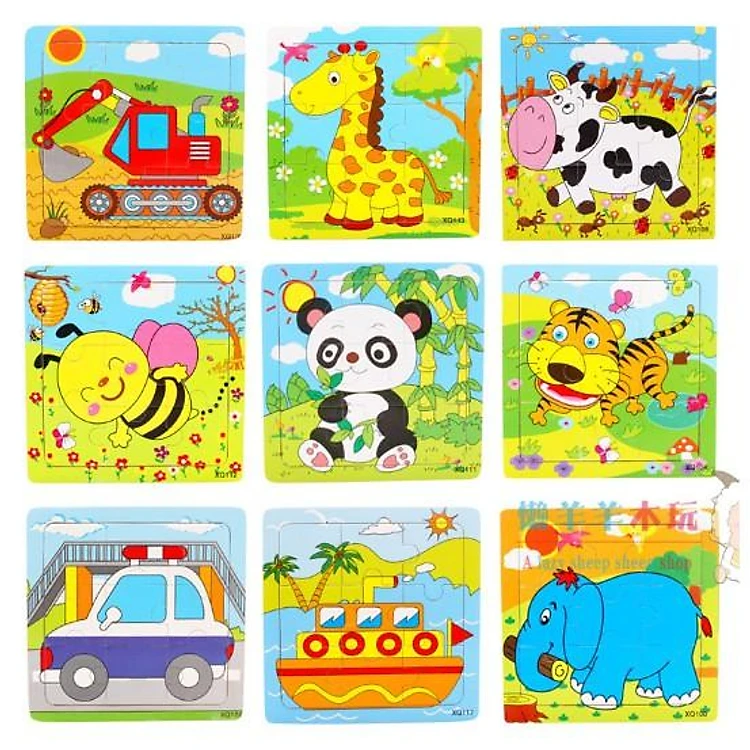 Combo 10 tranh ghép hình 9 miếng cho bé - giao ngẫu nhiên các hình khác nhau