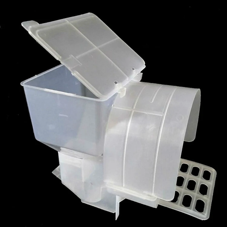 Thanh điều chỉnh lượng thức ăn: Thanh nhựa nhỏ hình chữ nhật được thiết kế các rãnh để điều chỉnh lượng thức ăn chảy ra.