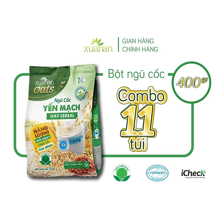 Combo 11 Túi Ngũ Cốc Yến Mạch Xuân An [ít đường] 400G {25g*16 gói}