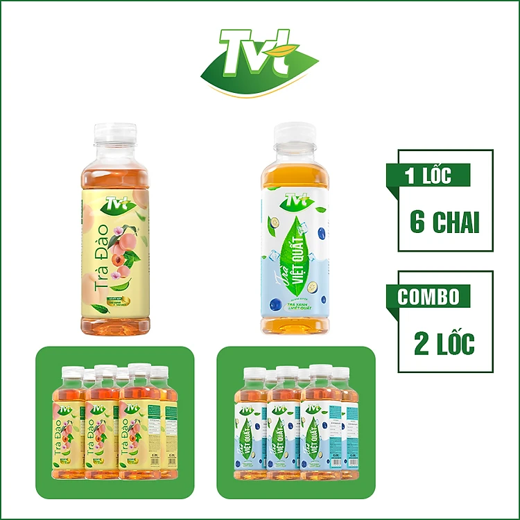 [Combo 12 chai 450ml] TVT trà Đào trà Việt Quất tinh chất trà xanh, trà đen, chống oxy hóa, thanh nhiệt giải phóng độc tố cơ thể