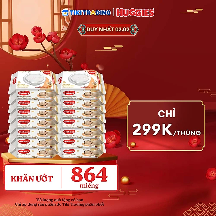 Combo 12 Gói Khăn Ướt Huggies Cacao và Bơ Hạt Mỡ (72 Miếng/ Gói)