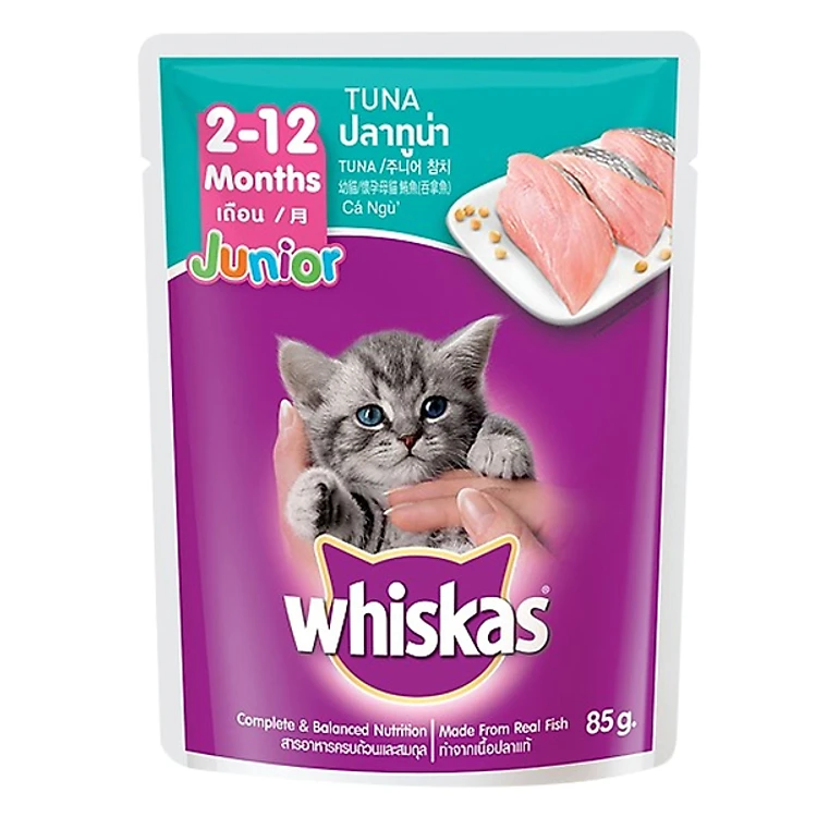 Combo 12 Gói Thức Ăn Cho Mèo Con Whiskas Vị Cá Ngừ Dạng Túi (85g)
