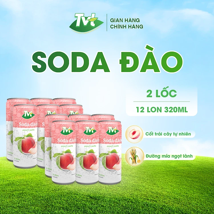 [Combo 12 lon 320ml] Soda Đào TVT - Nước cốt đào tự nhiên cùng soda nhẹ nhàng
