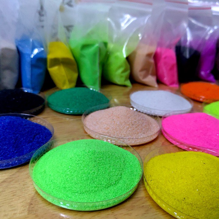 Lưu ý: Cát màu tô nếu dùng tay nhiều sẽ dính nhẹ màu trên tay, rữa bằng nước là sạch sẽ. Cát có chất keo để dính màu trên cát, có thể trong quá trình vận chuyển đóng gói chặt làm cát có cảm giác khô lại, cần lắc trước khi tô