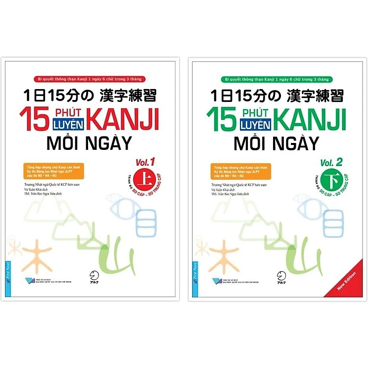 Combo 15 Phút Luyện Tập Kanji Mỗi Ngày Vol 1 + 15 Phút Luyện Tập Kanji Mỗi Ngày Vol 2 - Bản Quyền