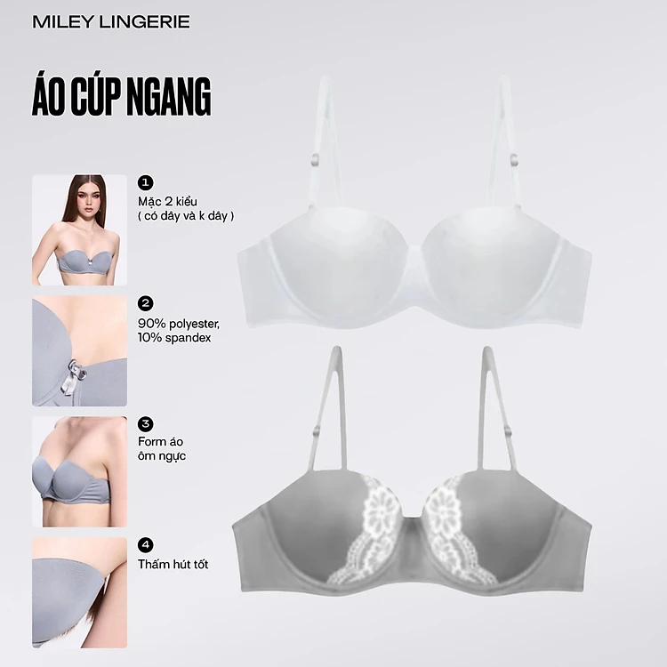 Combo 2 Áo Ngực Cúp Ngang Phối Ren Premium Miley Lingerie BRM02202-11202