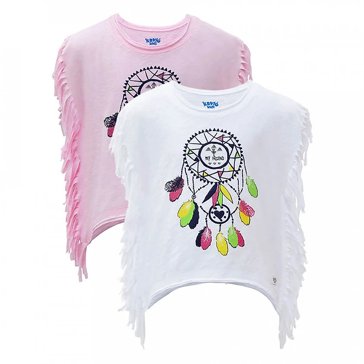 Combo 2 Áo Thun Tua Rua Kavio Kids GL118-N4X In Hình Chuông Gió có màu sắc nhẹ nhàng giúp tôn lên vẻ xinh xắn và đáng yêu cho bé gái. Áo được in hình chiếc chuông gió máy mắn đẹp mắt ở mặt trước thu hút bé ngay từ ánh nhìn đầu tiên. Thiết kế áo mới lạ, 2 bên sườn cắt tua rua độc đáo cho bé yêu phong cách mới mẻ hơn. Sản phẩm có thể phối cùng nhiều loại váy, quần khác nhau để bé tự tin khi diện đến trường hoặc đi dã ngoại cùng gia đình.