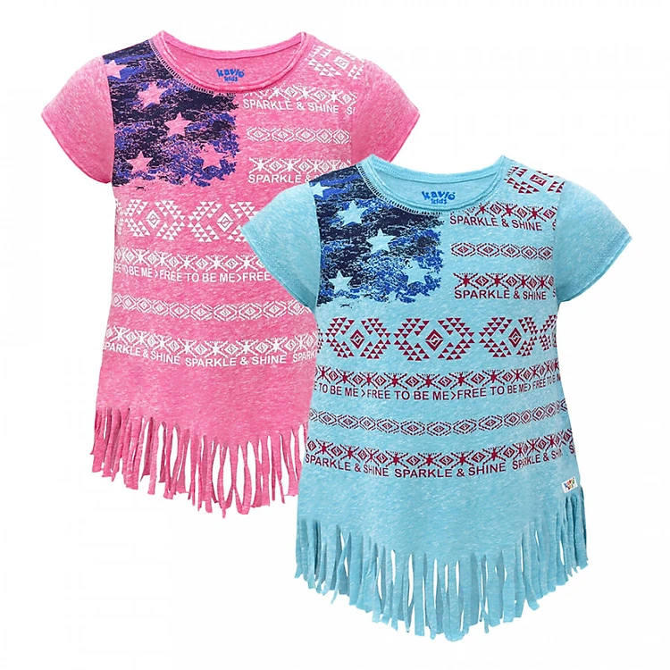 Combo 2 Áo Thun Tua Rua Kavio Kids GS111 Họa Tiết Thổ Cẩm mềm mại, thấm hút mồ hôi nhanh chóng cho bé thoải mái vận động và vui chơi nhờ được may từ chất liệu thun cotton cao cấp. Với màu sắc nhẹ nhàng, áo giúp bé sở hữu phong cách trong sáng, thanh lịch. Lai áo đính tua rua cá tính, cùng hoa văn thổ cẩm lạ mắt, sản phẩm sẽ khiến bé trở nên tự tin và nổi bật mỗi khi diện xuống phố.