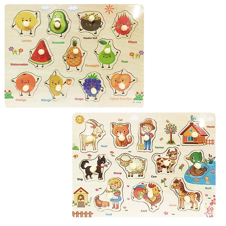 Bảng Tranh Ghép Tiếng Anh Có Núm - Chủ Đề Động Vật - Trái Cây:
