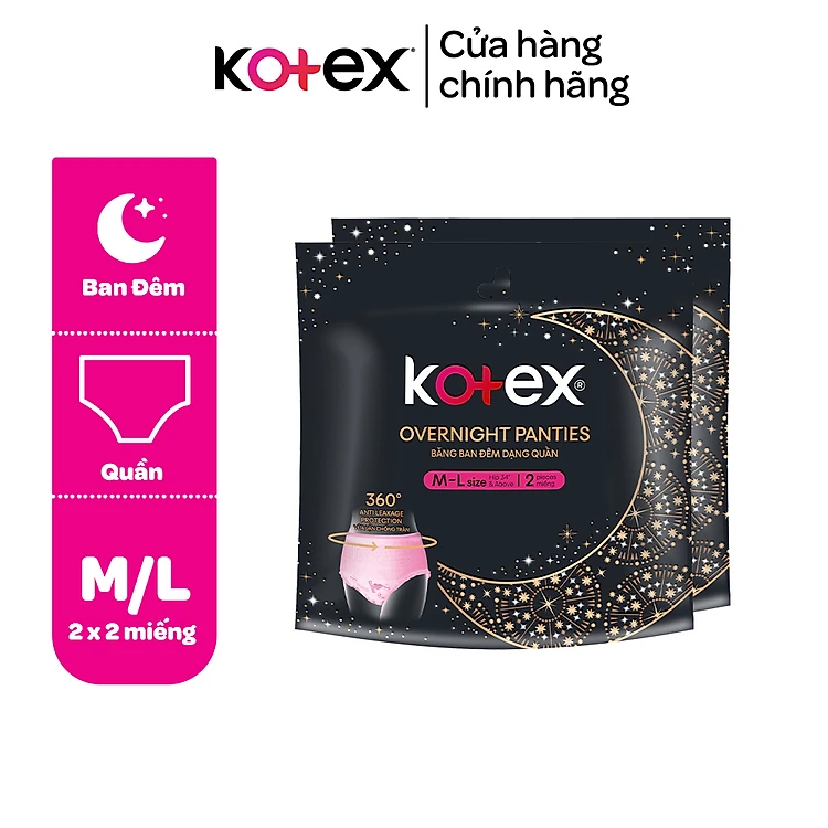 Combo 2 Băng Vệ Sinh Kotex Ban Đêm Dạng Quần cỡ M/L 5 miếng