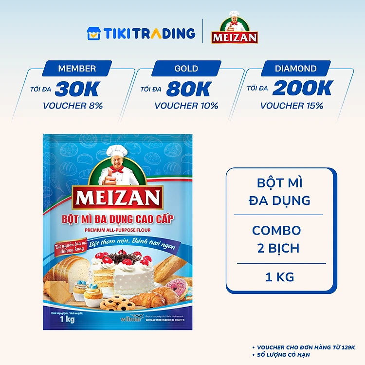 Combo 2 bịch Bột Mỳ Đa Dụng Meizan 1kg