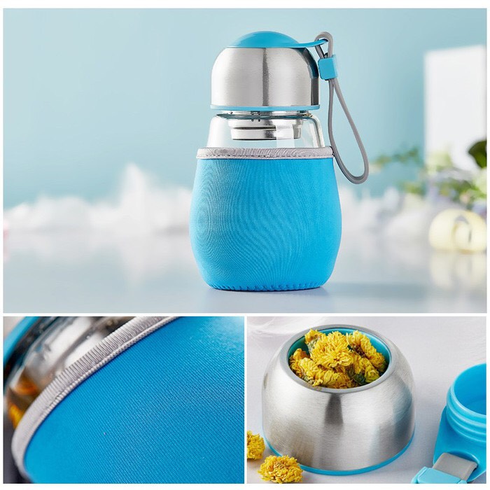 Combo 2 bình đựng nước Mini thủy tinh hình bầu có ngăn lọc xác trà 300ml
