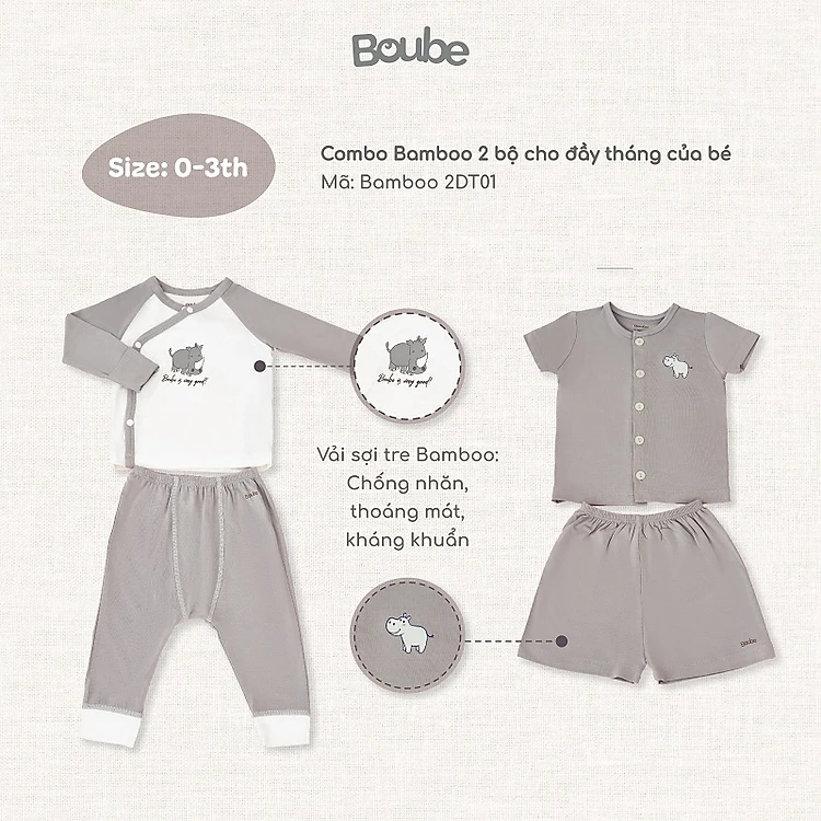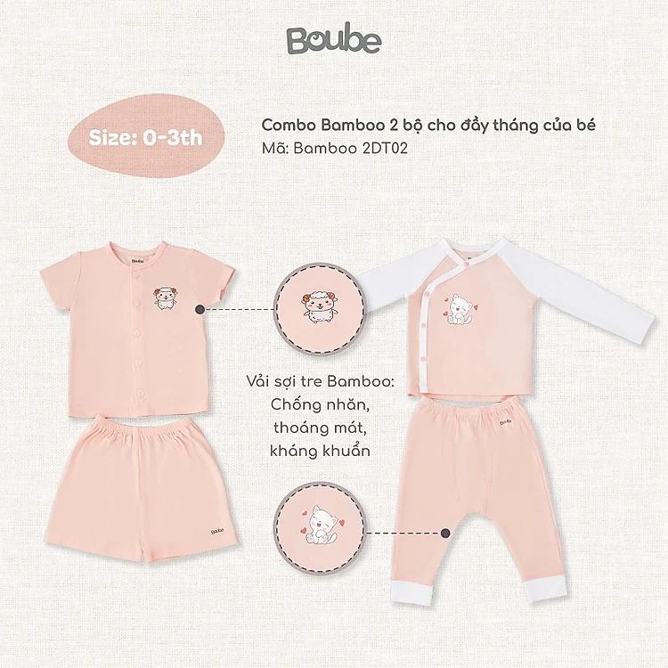Combo 2 bộ quần áo đầy tháng nhiều màu cho các em bé sơ sinh Boube, Vải sợi tre cao cấp Bamboo thông minh, thoải mái