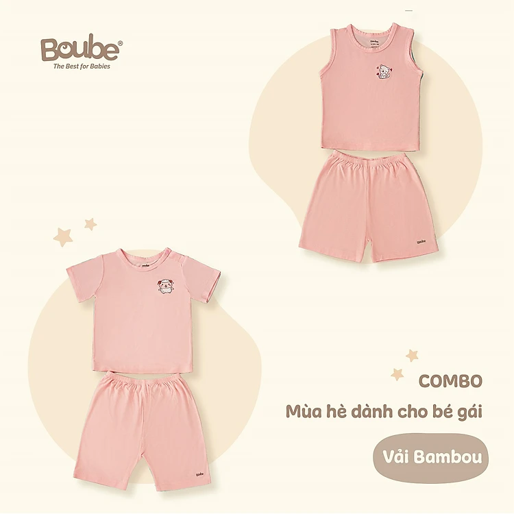 Combo 2 bộ quần áo mùa hè mát mẻ cho bé gái Boube, chất vải Bamboo thông minh, thoải mái - Size cho bé 3-24M (6-15kg)