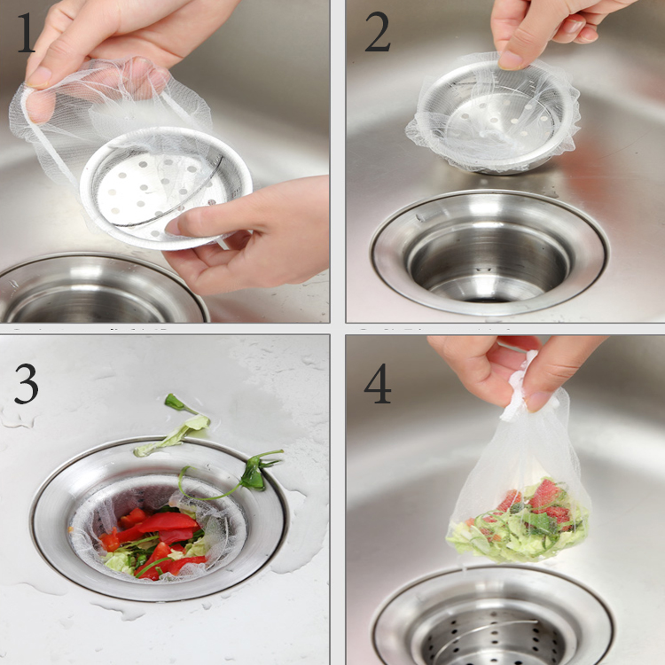 - Sản phẩm bao gồm: bộ 100 túi lưới lọc rác bồn rửa chén