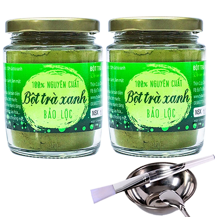 Combo 2 Bột Trà Xanh Nguyên Chất Bảo Lộc Vũ Gia (100g) + Tặng Bộ Pha Chế Đắp Mặt Nạ Cao Cấp