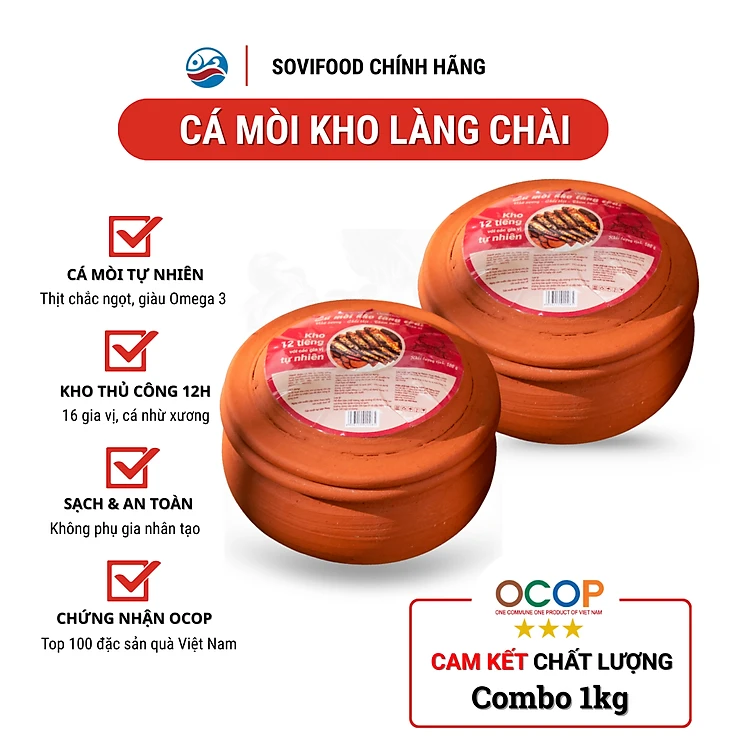 Combo 2 Cá Mòi Kho Niêu Đất Sovifood - Cá Kho Thủ Công 12 Tiếng, Không Phụ Gia, OCOP Hải Phòng - 1KG