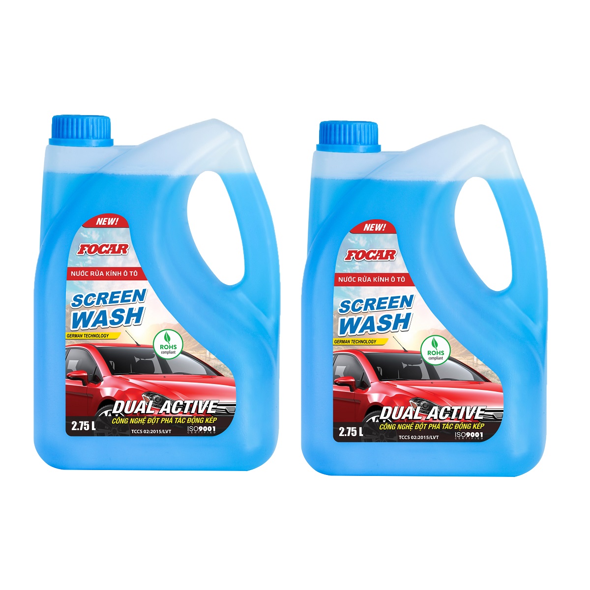 Combo 2 can nước rửa kính ô tô Focar Screen Wash 2,75L - Công nghệ Đức, tiêu chuẩn ISO 9001:2015, đây là sản phẩm nước rửa kính ô tô chuyên dụng hàng đầu Việt Nam, sản phẩm đầu tiên đạt tiêu chuẩn ROHS đủ điều kiện xuất khẩu vào thị trường EU khó tính.