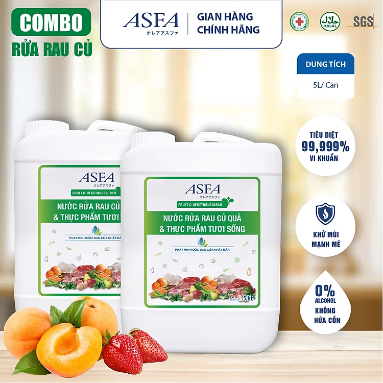 [Combo 2 Can] Nước Rửa Rau Củ Quả và Thực Phẩm Tươi Sống Khử Mùi, Diệt Khuẩn ASFA Fruits & Vegetable 5 Lít