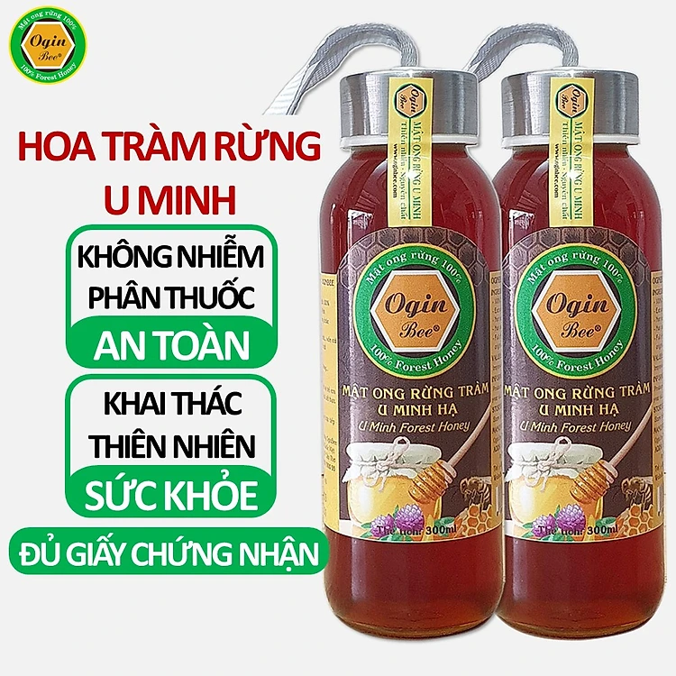 [Combo 2 chai 300ml], Mật ong rừng U Minh, Khai thác CHUẨN THIÊN NHIÊN 100%, OGINBEE