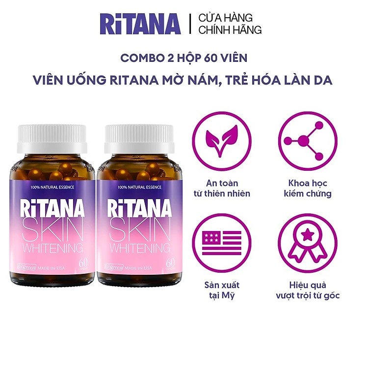[Tặng Hộp 15v] Combo 2 Chai 60v – Viên Uống Trắng Da Ritana Ecogreen Chứa Glutathione Mờ Sạm Nám, Chống Nắng Cho Da