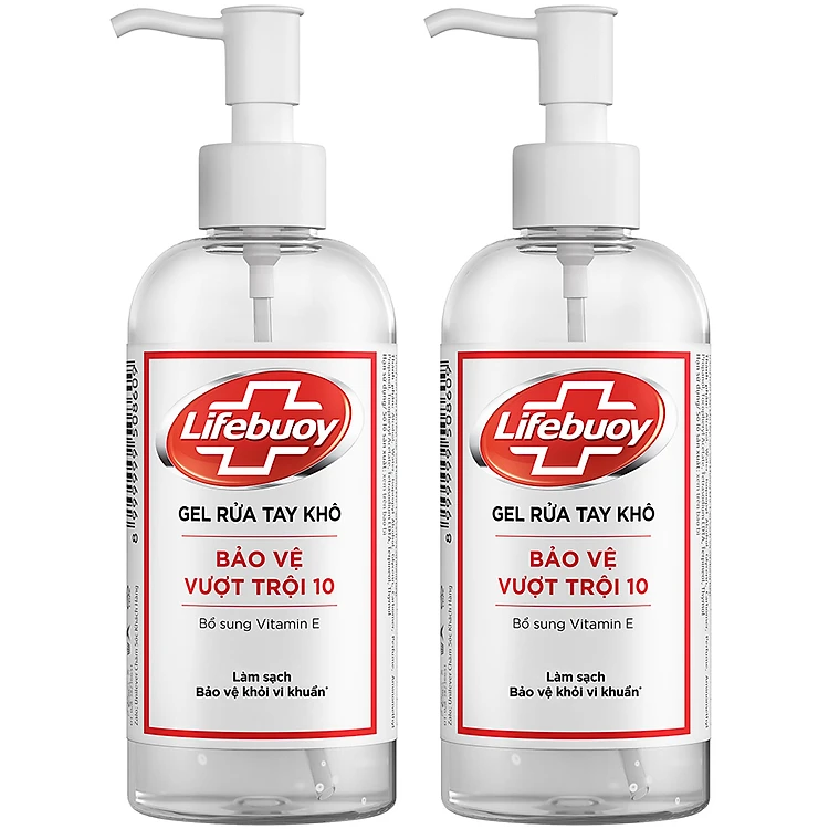 - Combo 2 Chai Gel Rửa Tay Khô Sạch Siêu Nhanh Lifebuoy Bảo Vệ Vượt Trội 10 với công thức vượt trôi, bảo vệ khỏi 99.9% vi khuẩn gây bệnh, thích hợp sử dụng trong các trường hợp không có xà phòng hoặc nước.