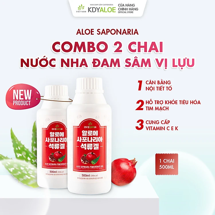 COMBO 2 CHAI NƯỚC NHA ĐAM SÂM VỊ LỰU HỮU CƠ KDY ALOE