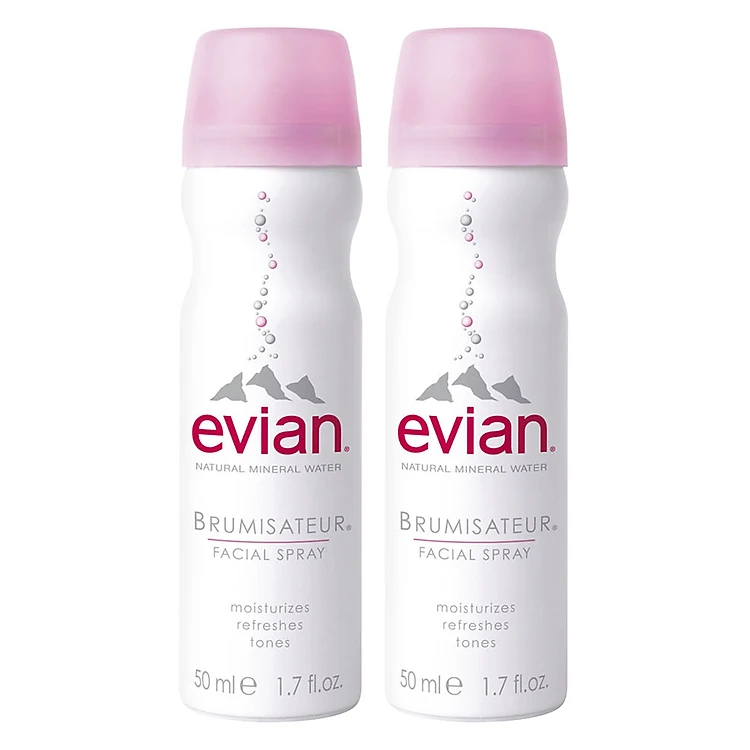 - Combo 2 Chai Nước Xịt Khoáng Thiên Nhiên Evian Natural Mineral Water (50ml) cho mọi loại da, được lấy trực tiếp từ dãy An-pơ đã trải qua hành trình 15 năm trong lòng dãy núi Alps. Nguồn nước này được lấy ở độ cao 850m so với mực nước biển, là nơi mà tuyết tan và mưa ngấm qua những hòn đá.