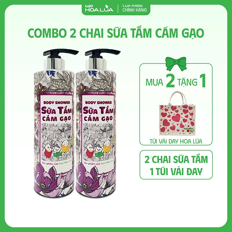 COMBO 2 chai Sữa Tắm Cám Gạo 650ml - Tặng 1 túi vải đay