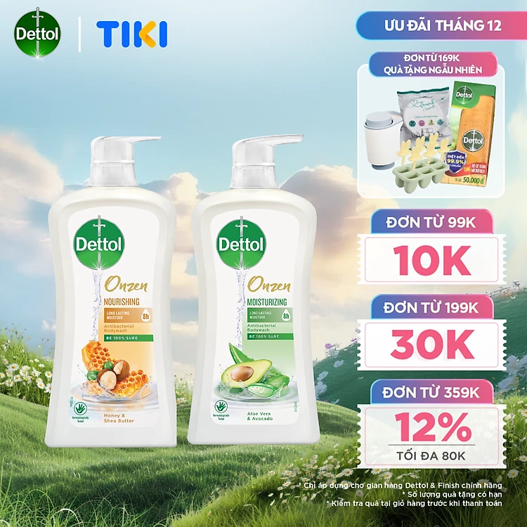 Combo 2 Chai Sữa Tắm Dettol Onzen Mật Ong Kháng Khuẩn Dưỡng Thể (950g) và Dưỡng Ẩm Lô Hội & Bơ (900g)