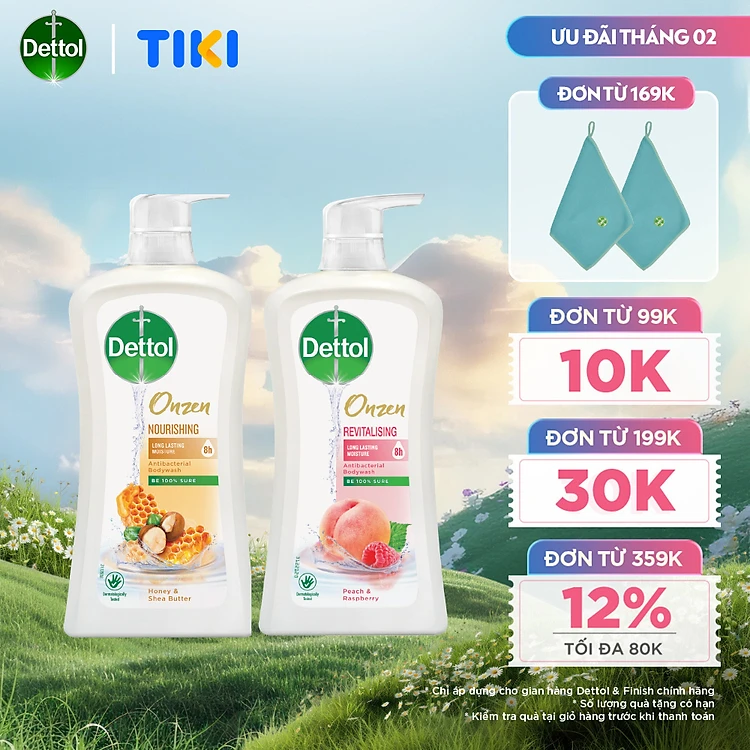 COMBO 2 CHAI SỮA TẮM DETTOL ONZEN MẬT ONG KHÁNG KHUẨN DƯỠNG THỂ VÀ DƯỠNG DA ĐÀO & PHÚC BỒN TỬ (950G/CHAI)