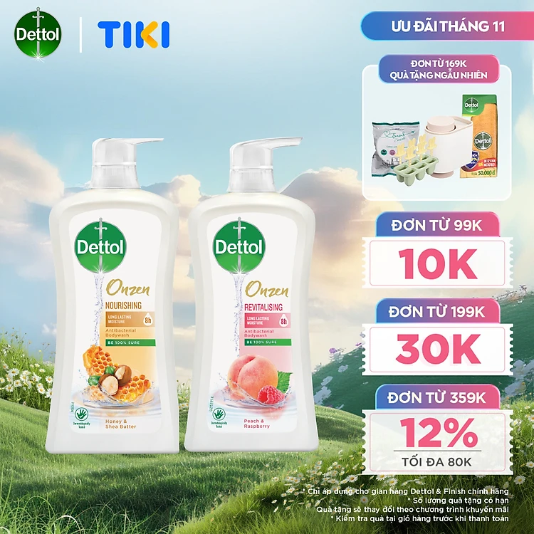 COMBO 2 CHAI SỮA TẮM DETTOL ONZEN MẬT ONG KHÁNG KHUẨN DƯỠNG THỂ VÀ DƯỠNG DA ĐÀO & PHÚC BỒN TỬ (950G/CHAI)