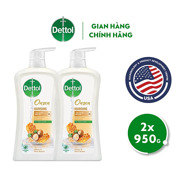 Combo 2 chai sữa tắm Dettol Onzen mật ong kháng khuẩn và dưỡng thể - chai 950G