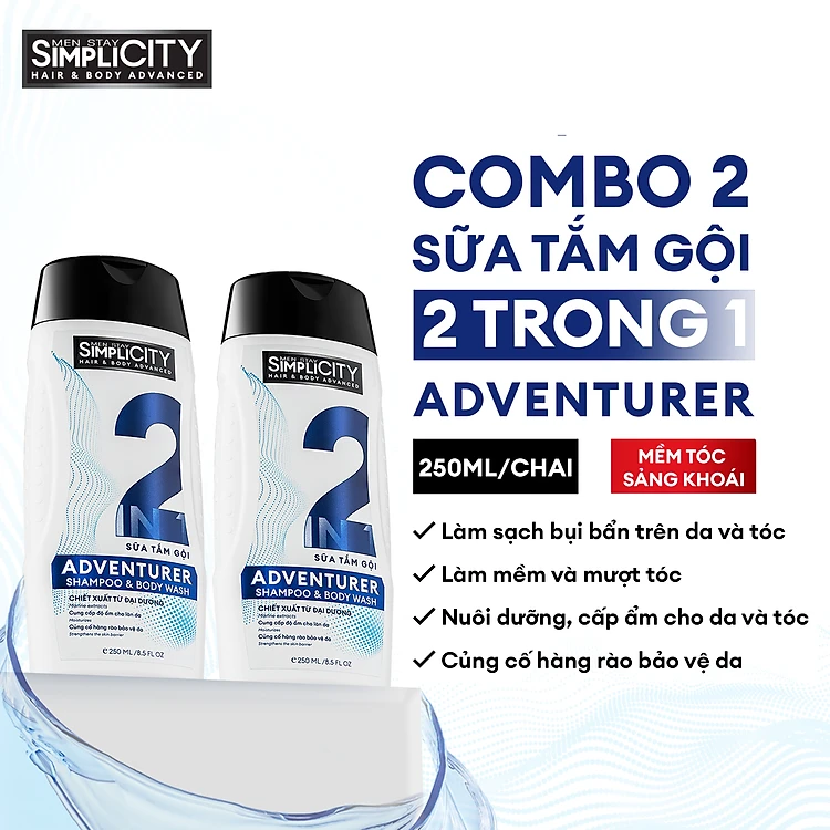 Combo 2 chai Sữa tắm gội 2 in 1 nuôi dưỡng tóc và làn da Men Stay Simplicity Hair and Body Advanced Adventurer 250ml