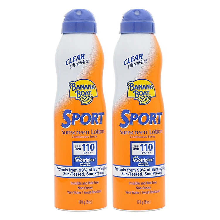 - Combo 2 Chai Xịt Chống Nắng Thể Thao Banana Boat SPF110 521903 (170g / Chai) có chỉ số chống nắng cực mạnh SPF110 sẽ giúp bạn xua tan nỗi lo sạm da, nám da khi hoạt động dưới ánh nắng mặt trời. Thành phần độc đáo không chứa dầu và các chất phụ liệu, hình thành màng chắn chống lại tác hại của tia UVA và UVB hiệu quả.