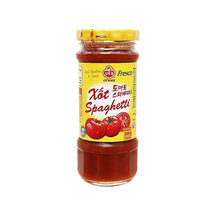Sốt Spaghetti Ottogi 220G dạng lọ có nắp đậy tiện dụng, dễ bảo quản và dùng được lâu.