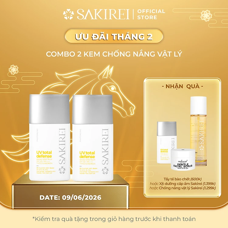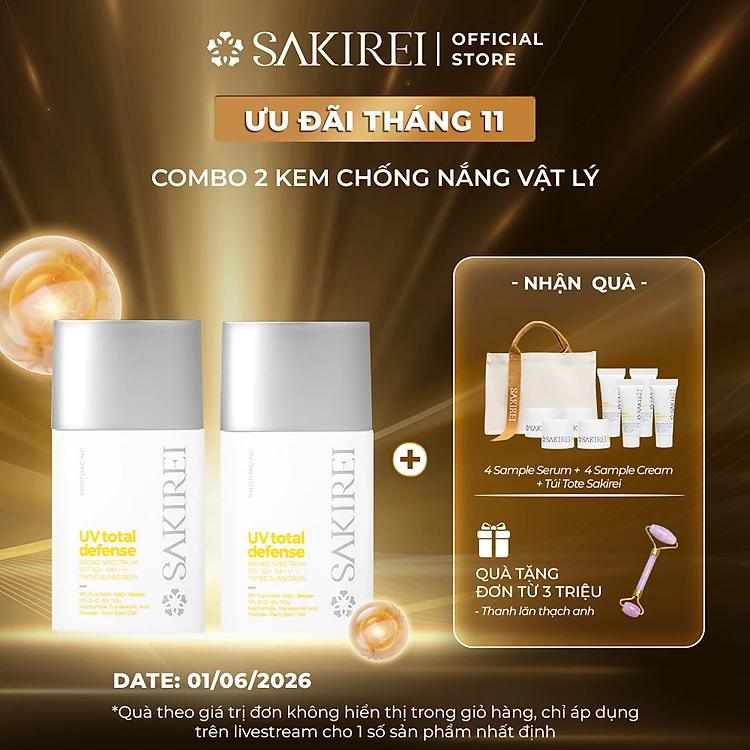 Combo 2 Chống nắng vật lý bảo vệ da Sakirei UV Total Defense Broad Spectrum SPF 50+ PA++++ 50ml