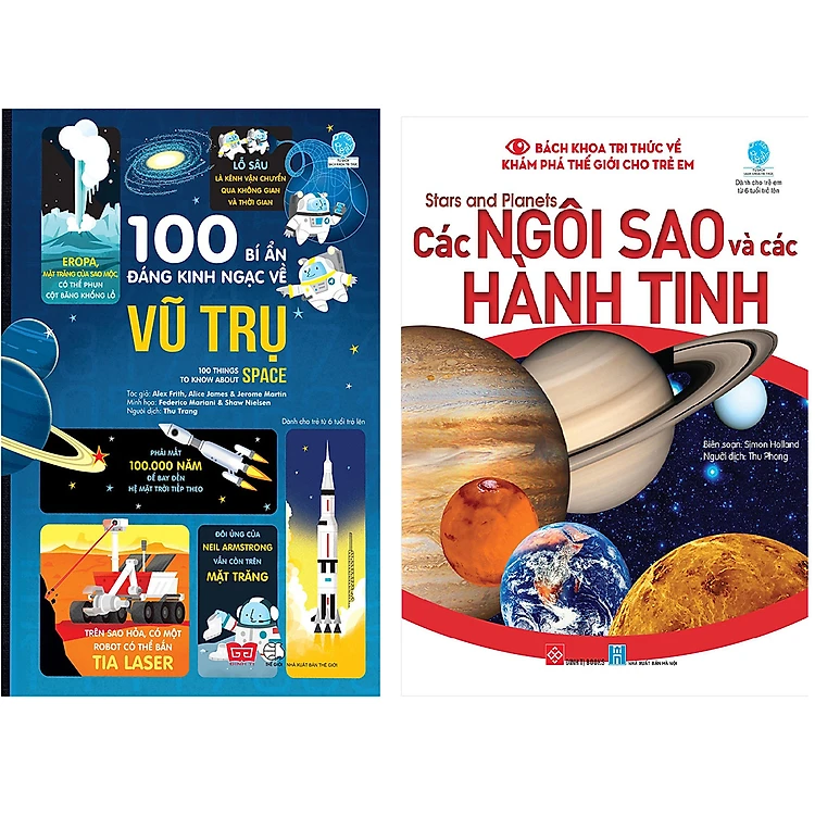 Combo 2 Cuốn: 100 Bí Ẩn Đáng Kinh Ngạc Về Vũ Trụ + Bách Khoa Tri Thức Về Khám Phá Thế Giới Cho Trẻ Em - Stars And Planets - Các Ngôi Sao Và Các Hành Tinh