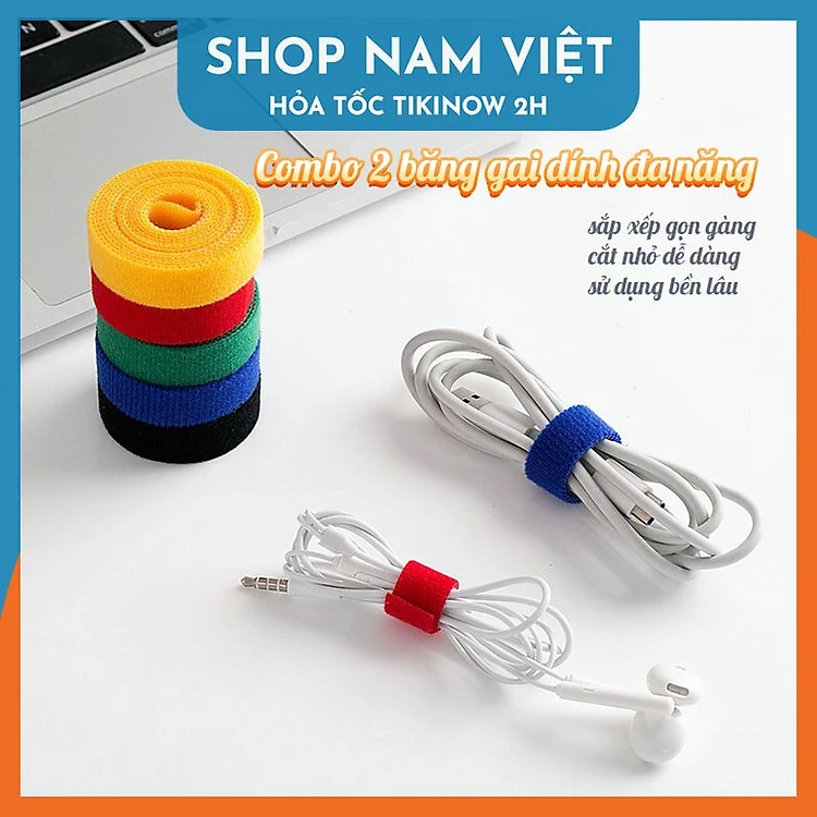 Combo 2 Cuộn Băng Gai Dính Velcro Cỡ 1,5cm - Dây Dính 2 Mặt Quấn Dây Điện, Dây Sạc, Tai Nghe Gọn Gàng - Hàng Chính Hãng NAVIVU