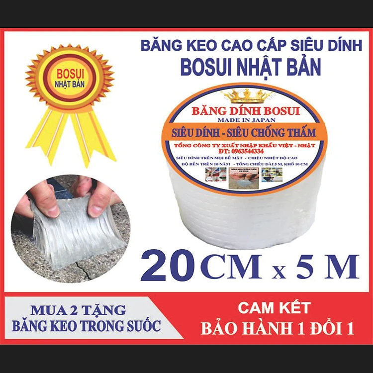 combo 2 cuộn Băng keo chống thấm, chống dột cao cấp Bosui Nhật Bản siêu dính đa năng khổ 20cm x 5m
