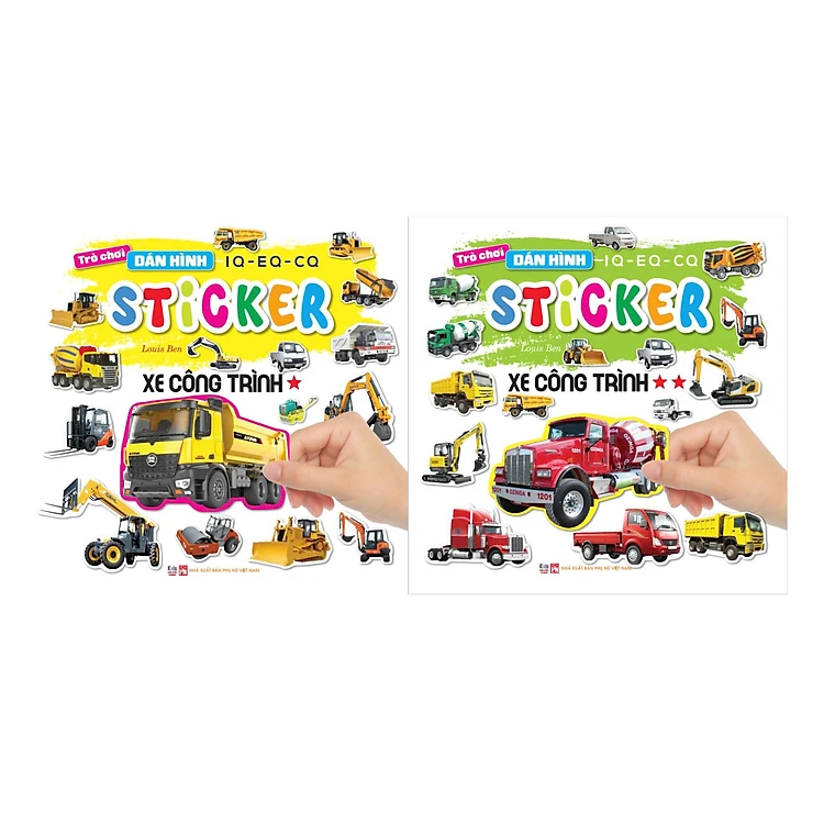 Combo 2 cuốn bé sưu tầm các loại xe công trình - sách sticker thế giới xe - Phát triển IQ - EQ - CQ