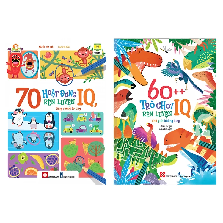 Combo 2 Cuốn Rèn Luyện Tư Duy Cho Trẻ: 70 Hoạt Động Rèn Luyện IQ, Tăng Cường Tư Duy + 60++ Trò Chơi Rèn Luyện IQ: Thế Giới Khủng Long